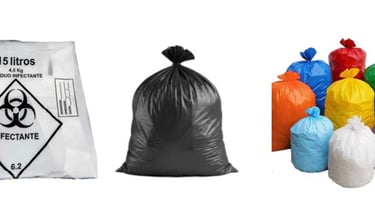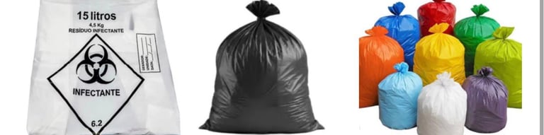 Sacos de lixo de todos os tamanhos e tipos: preto, transparente, coloridos e infectantes